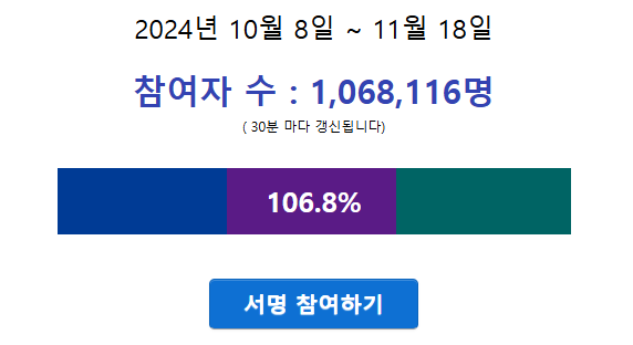 현재 이재명 대표의 재판을 앞두고 무죄 판결을 촉구하는 탄원 캠페인이 온라인에서 활발하게 이루어지고 있습니다. 2024년 11월 7일 기준, 69만명에 가까운 사람들이 이재명 더불어민주당 대표의 무죄 판결 촉구 탄원 서명에 참여했습니다.